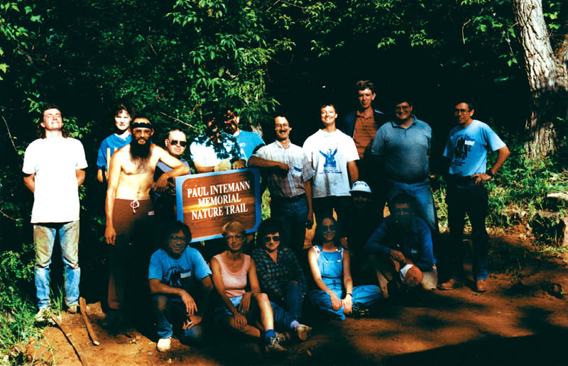 1991 - Volunteers celebrate after the two-day project that transformed the remains of a former streetcar line past the Iron Spring in Manitou Springs into the westerly trailhead of the Intemann Trail.