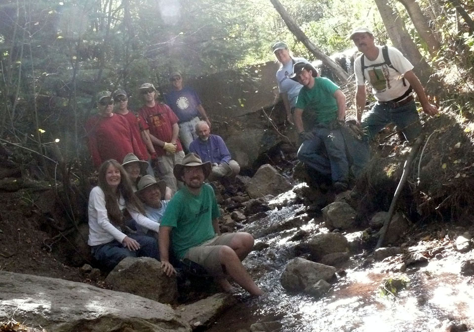 October 4, 2014 - Volunteers at the last official ITC workday take an end of the day break at the Sutherland Creek waterfall.